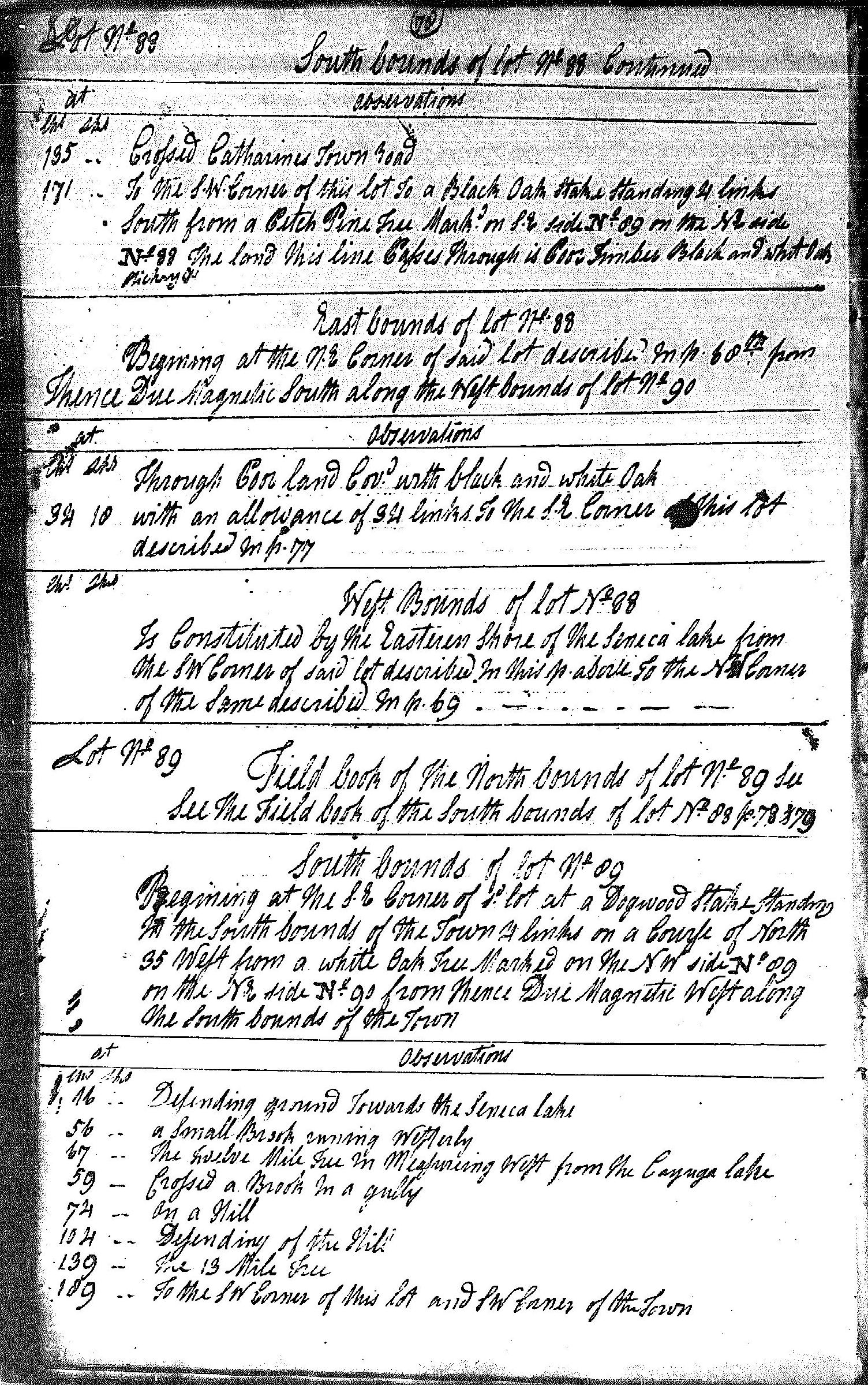 Is Constituted by the Easteren Shore of the Seneca lake from The SW Corner of said lot described in this p. above [88SW] To the NW Corner of the Same described in p. 69 [77SW]