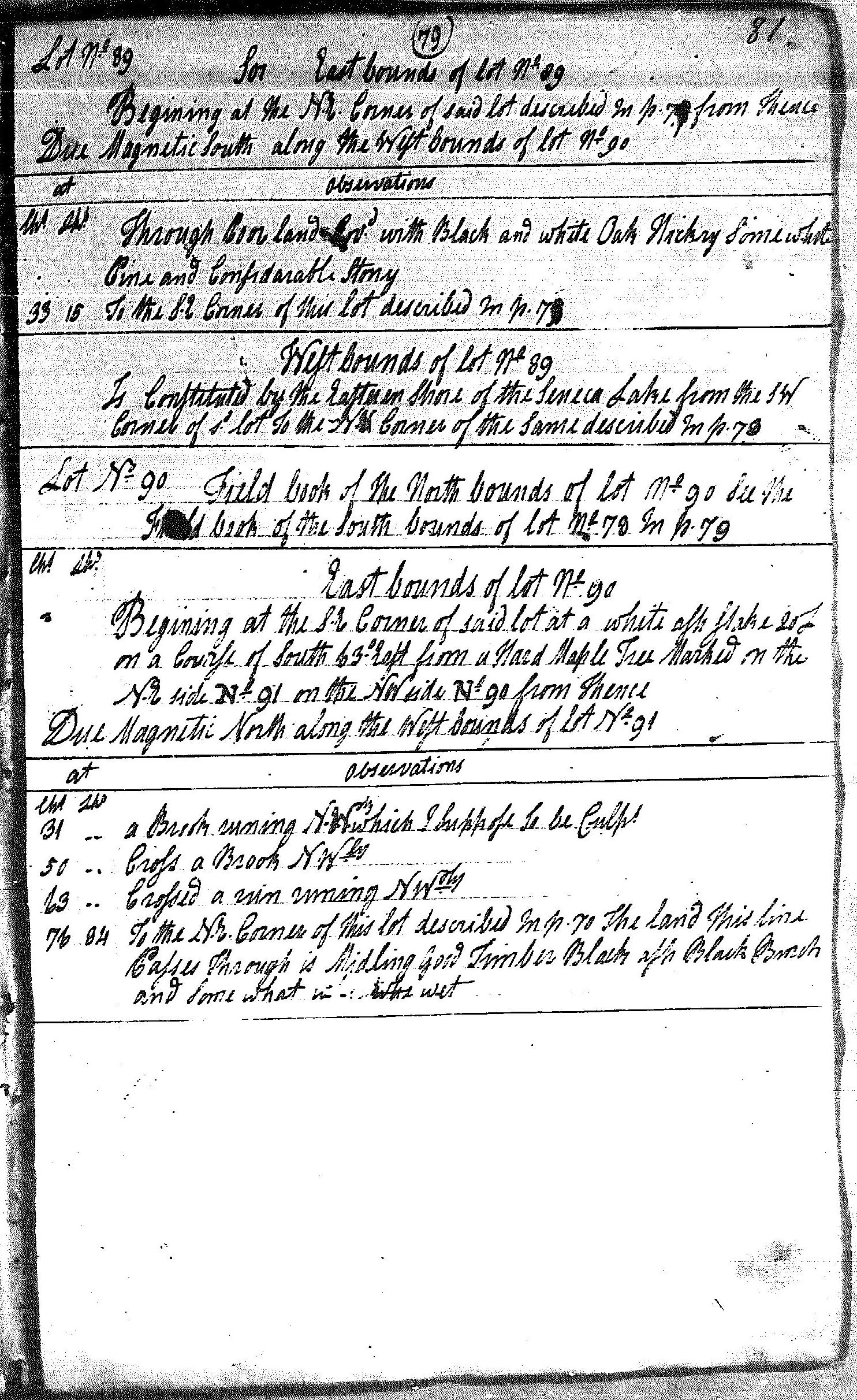 Is Constituted by the Easteren Shore of the Seneca Lake from the SW Corner of S’d lot To the NW Corner of the same described In p. 78 [88SW]