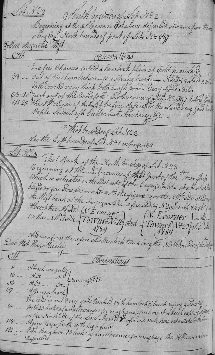 S.Wly side standing in the West bank of the Cayuga Lake a fore said & N 29 E 1 Ch 84 Lks. from