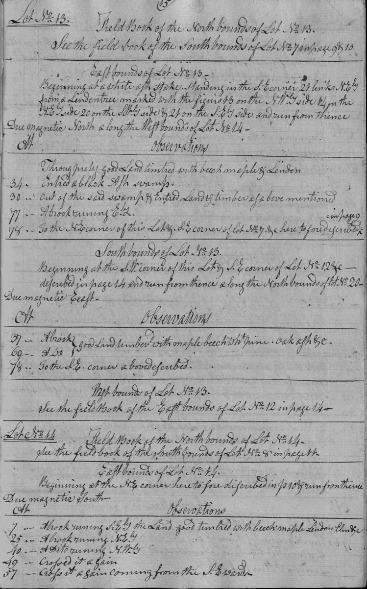 | 7 | - | A brook runing S.Ely the Land good timbred with beech maple Linden Elm &c. |