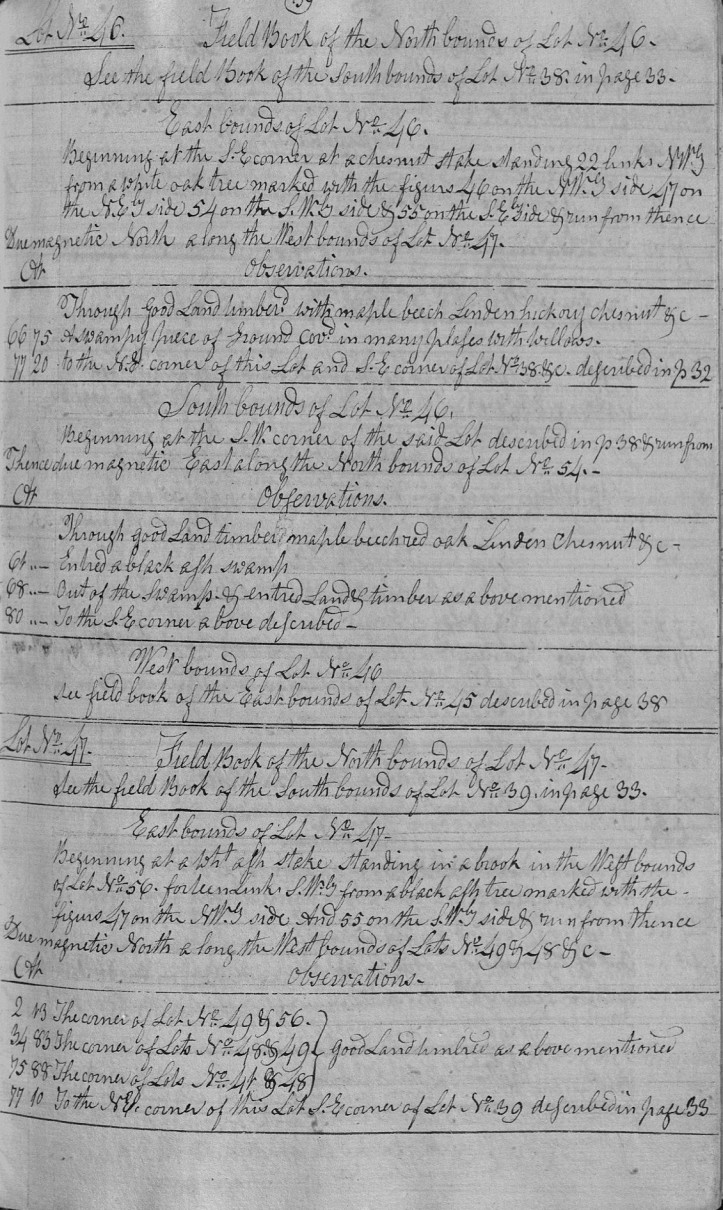 | 34 | 83 | The corner of Lots No. 48 & 49 } good Land timbred as above mentioned |