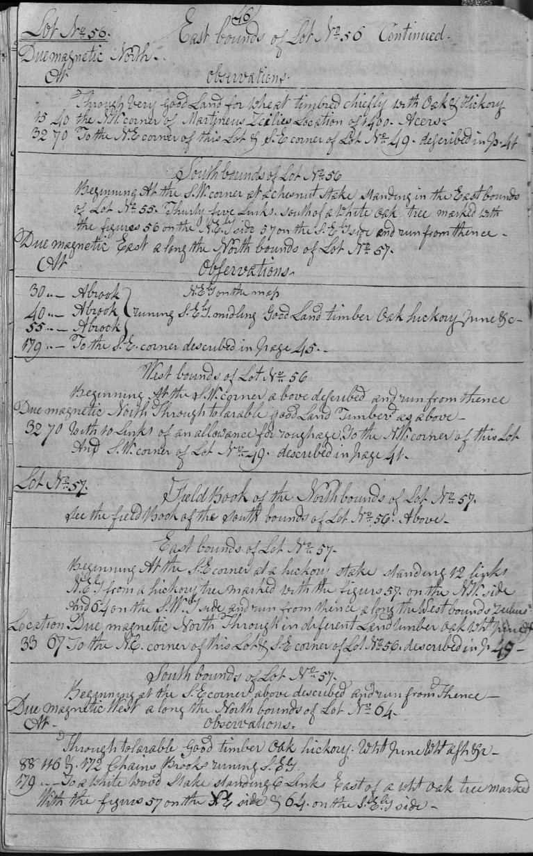 Of Lot No.55. Thirty five Links.south of a white oak tree marked with the figures 56 on the N.Ely side 57 on the S.Ely side and run from thence -